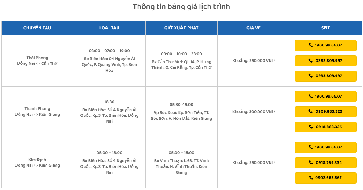 - Xe khách ghế ngồi 45 chỗ Tùng Châu đón khách lúc 5h30 từ BX Biên Hòa. Giá vé chỉ 120k/vé, liên hệ SĐT 0613.838.046 và 0903.312.440
